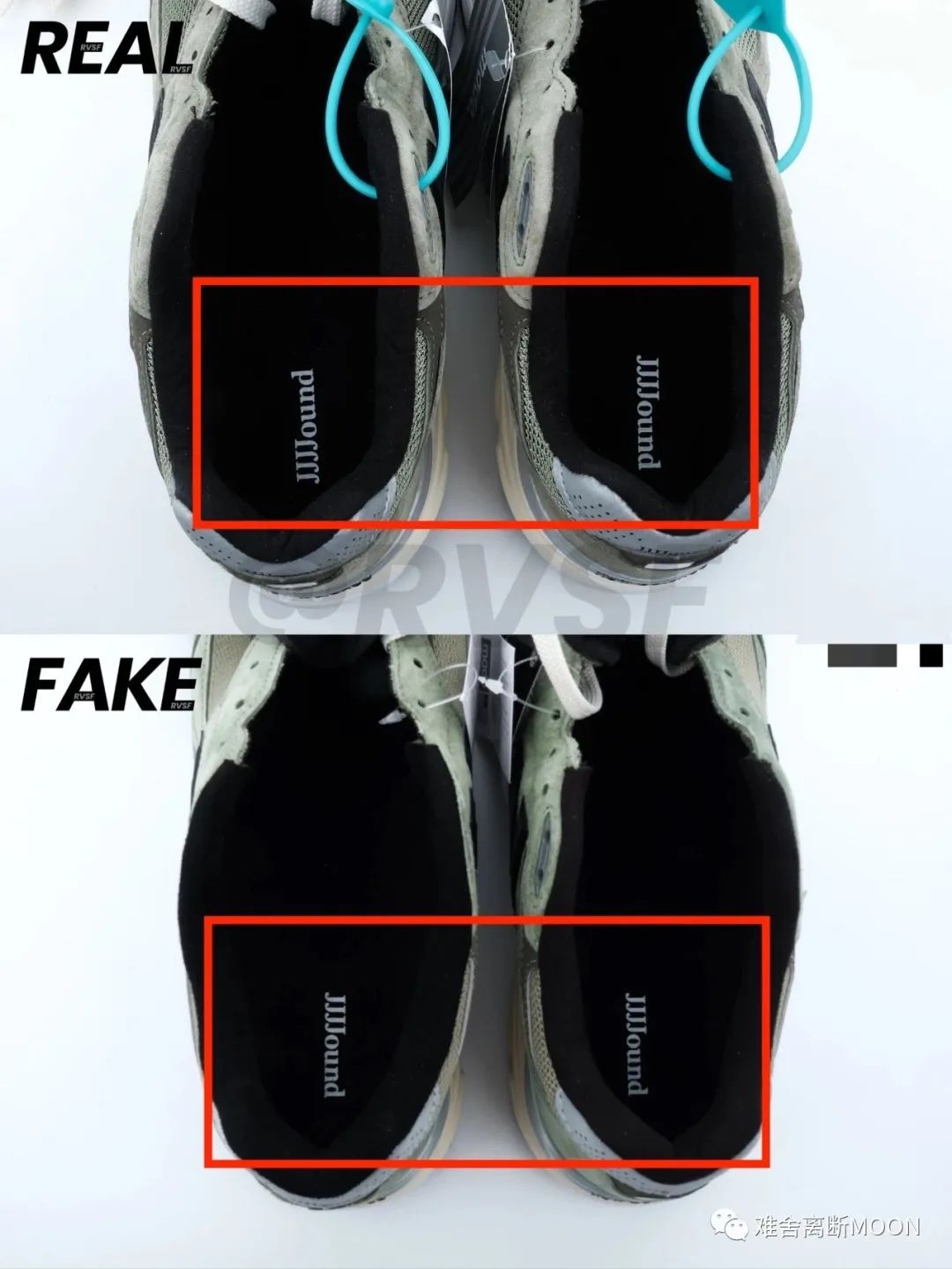 「990 V3基础鉴定点之八:鞋垫印花:REAL鞋垫上的JJJJound印花为两个不同方向的,而FAKE的鞋垫印花仅仅只有一个方向」