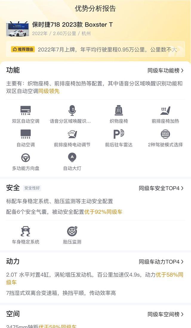 需要强调的是,对于一辆如保时捷718 Boxster T这样的跑车,车辆的个性化改装和配置非常关键。许多车主喜欢根据自己的品味对车内外进行个性化的调配。虽然这在二手市场上可能会造成某些信息不对称,但如果能进行充分的实地考察与购买前彻底的车况评估,这样的个性化选择反而能进一步提升车辆的吸引力。