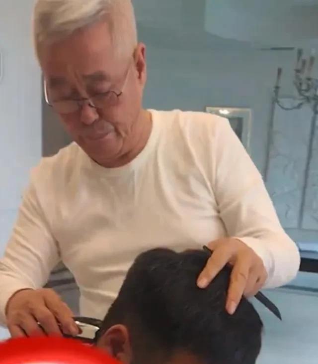 67岁赵本山帮宋晓峰剃头,戴着老花镜好慈祥,一旁宋小宝呲牙大笑