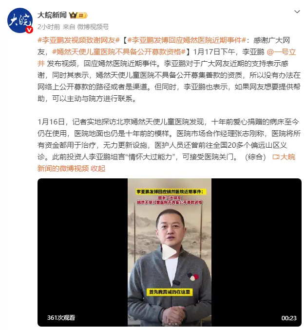 近日,李亚鹏通过个人社交平台发文,就嫣然医院近期引发的热议作出正面回应,既对各界的关注与支持表达感谢,也明确强调“嫣然天使儿童医院不具备公开募款资格”,同时厘清医院运营性质与公益边界,避免争议进一步扩大。