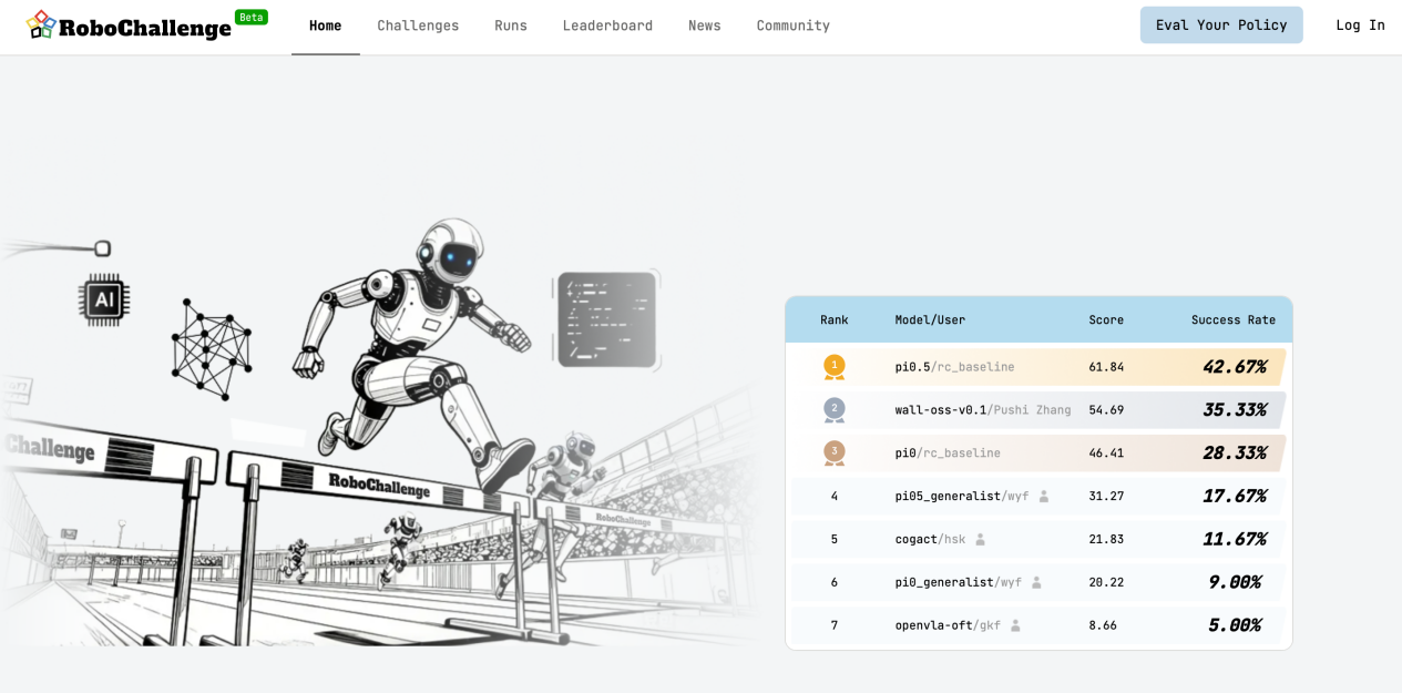 长期以来,具身智能的难点和痛点在于尚未形成一个统一的评测标准,供大家尽可能低成本、且比较公平地评测模型,观察其在真实环境的泛化能力、鲁棒性等。