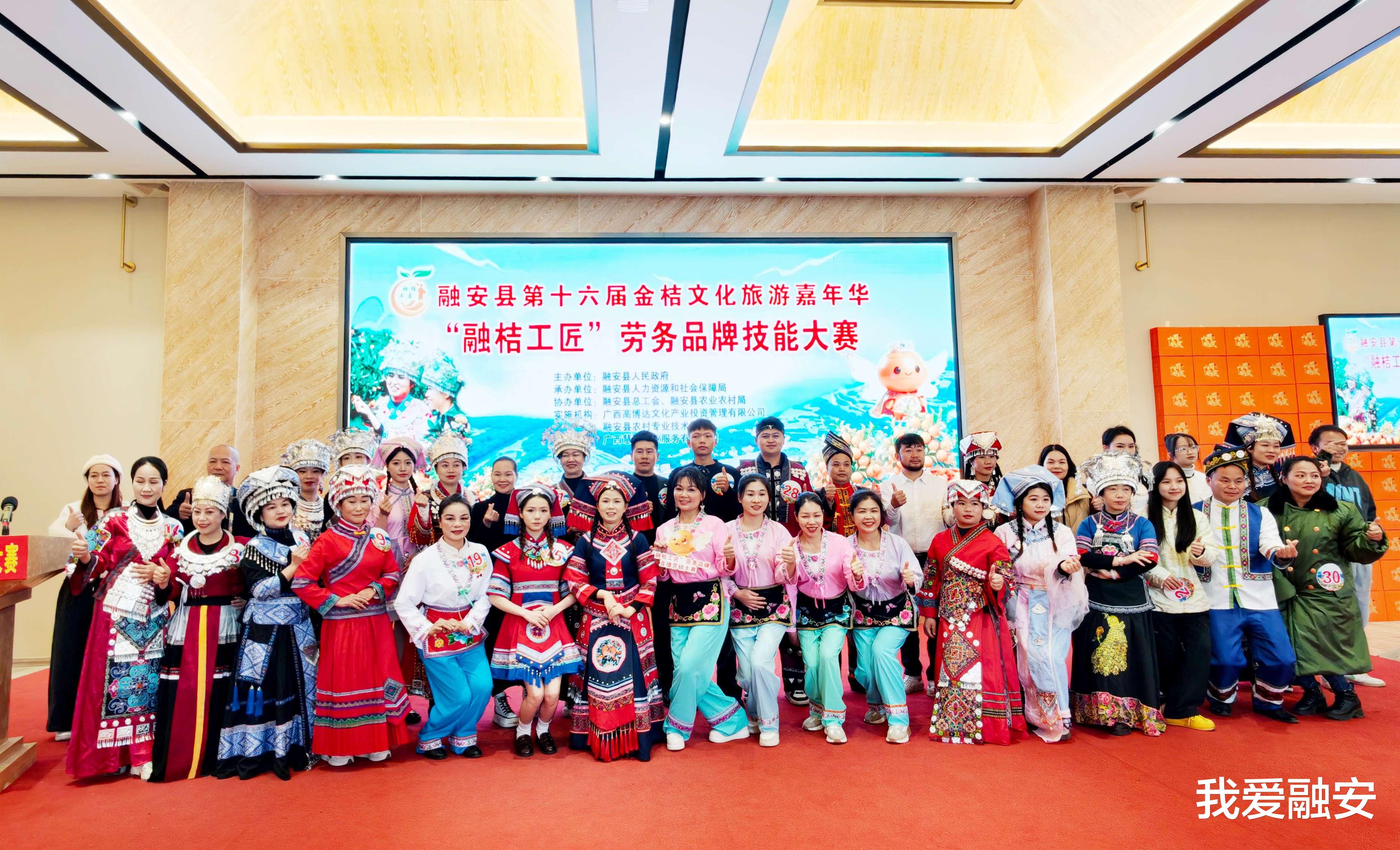 12月17日,参赛选手在2025年融安县第十六届金桔文化旅游嘉年华“融桔工匠”劳务品牌技能大赛前集中亮相(谭凯兴 摄)。