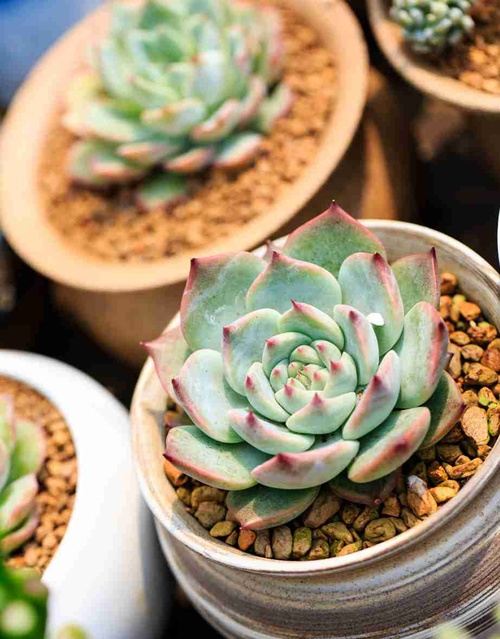 在众多绿植中,有一种特别适合用来做创意栽培的,那就是静夜。静夜是一种多肉植物,它的叶片小巧玲珑,呈莲座状排列。叶片顶端有一抹淡淡的红晕,在阳光充足的时候特别好看。静夜的特点就是比较耐旱,不需要频繁浇水,而且它对光照有一定的要求,喜欢充足的阳光,但夏季高温时需要适当遮荫。