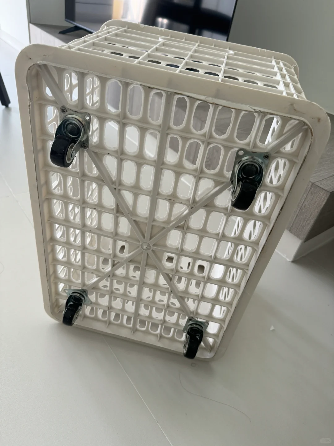 还可以把水果框下安装几个万向轮,更加方便挪动,一个简简单单的脏衣篮就做好了。