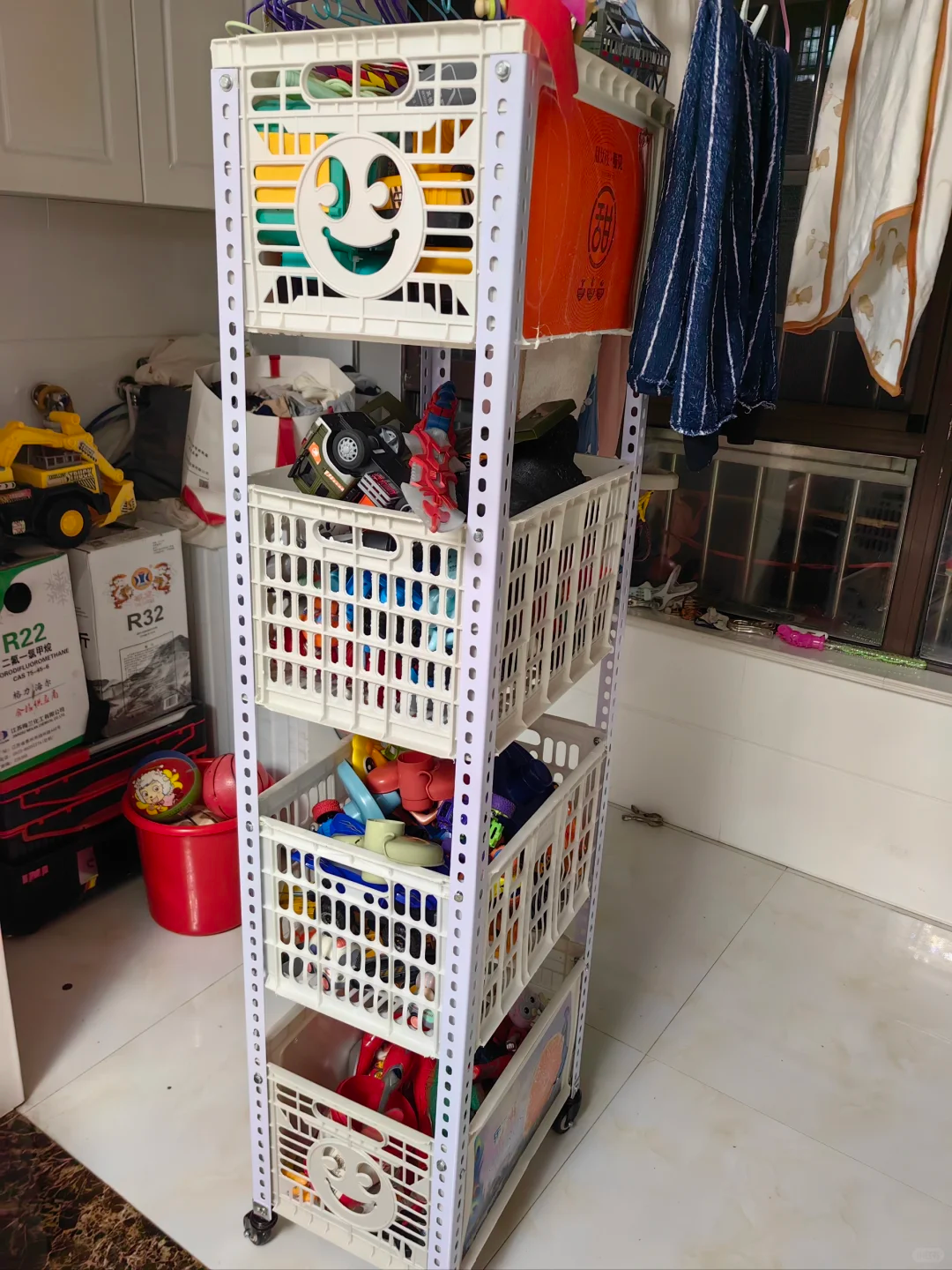 水果筐还可以做成收纳架,放在家中客厅的角落中,日常收纳一些杂物和玩具,超好用。
