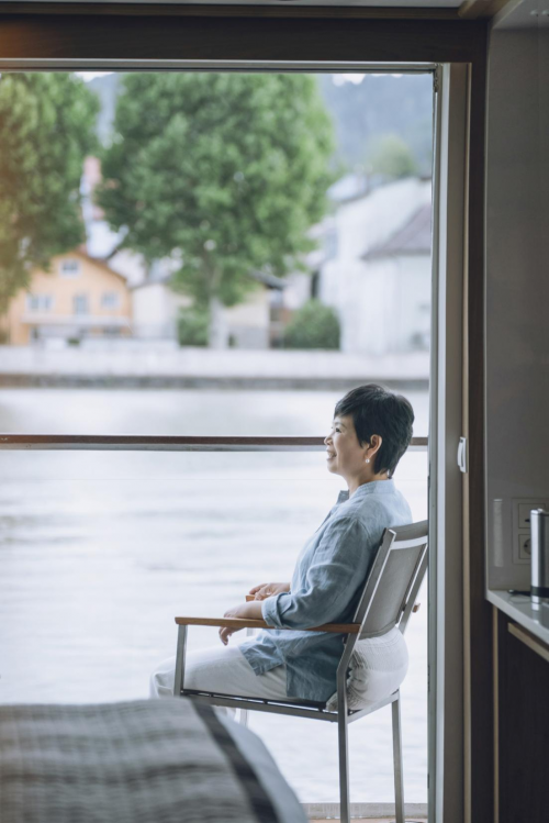 维京游轮以典雅的北欧风格设计、舒适的现代化设施闻名,旗下河轮与海轮均无内舱房,船上氛围宁静。对于倪夏莲来说,她尤为享受每天和爱人坐在房间里,静静欣赏窗外沿途的美景。