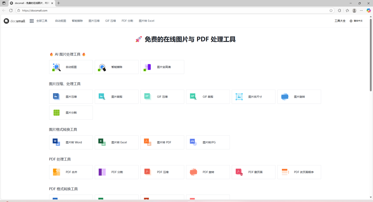 16、Docsmall这是一个可以免费在线处理各种图片和pdf的网站。比如一键自动抠图,一键擦除照片里不想要的背景和物体,一键模糊照片变清晰,还可以让图片一键转成word、excel、pdf等各种文件,办公效率瞬间翻倍,还支持pdf文件,自由合并分割压缩一键转换成wordppt等文档,免去了一堆复杂的操作。