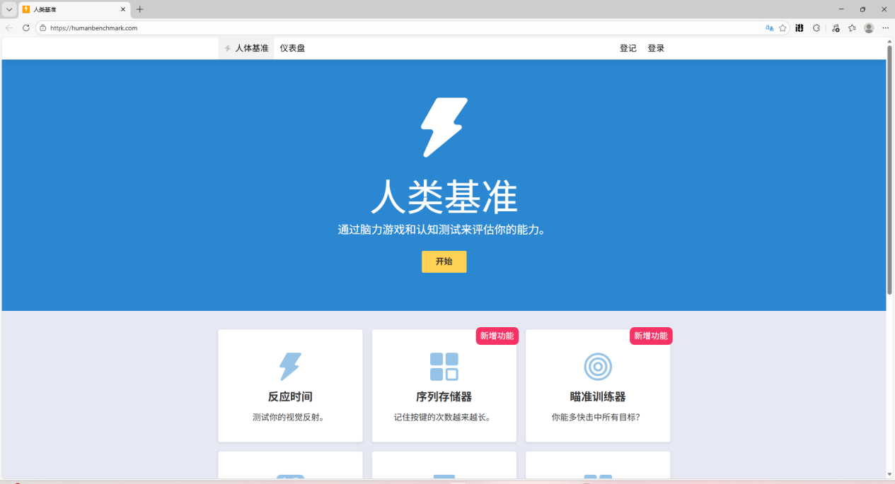 5、Human Benchmark这是一个能测试脑子反应速度和智商的趣味网站,内置反应时间、瞄准训练、视觉记忆、打字测试、黑猩猩测试等多款脑力小游戏,测试过程简单又上头。每一项测试都能精准试探脑力极限,网站还会将测试成绩进行全球排名,让你清晰了解自己的段位,看看与天才的差距。
