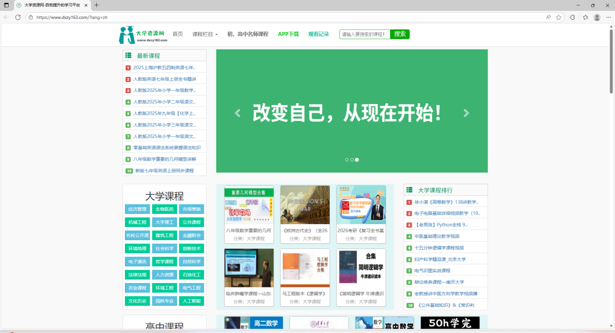 14、大学生资源网这是一个课程覆盖极全的免费学习神器,无论你是小学、中学、大学学生,考研、考公、备考资格考试的考生,还是职场人士,都能找到所需课程。涵盖四六级、雅思托福、工程建筑、财会考试、司法考试、办公软件、平面设计、网页设计、生物医药、人工智能等众多领域,课程体系完整,能让你从 0 到 1 掌握任意课程和技能,更有北大、清华等名牌大学的课程资源,所有课程全部免费,性价比拉满。