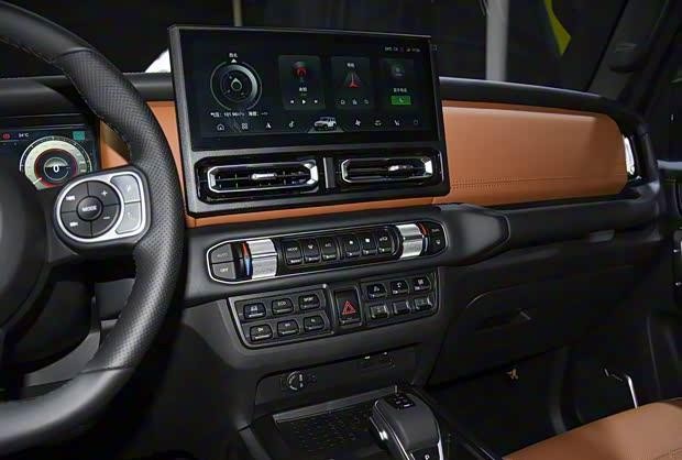 进入车内,新车配备了由10.25英寸仪表盘与12.3英寸中控屏组成的双联屏系统,支持导航及手机互联功能。车辆标配了前后泊车雷达与360度全景影像。内饰风格保持了硬派SUV的实用取向,同时保留了大量的实体按键,包括独立的空调控制区域与越野功能控制区,便于驾驶者在复杂路况下进行操作。
