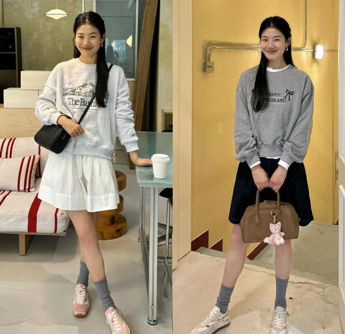 卫衣是属于休闲风的单品,搭配上半身裙则能够增加女人味,显得更俏皮,避免太过于随性,然后再搭配上德训鞋,也可以和卫衣形成风格上的呼应。