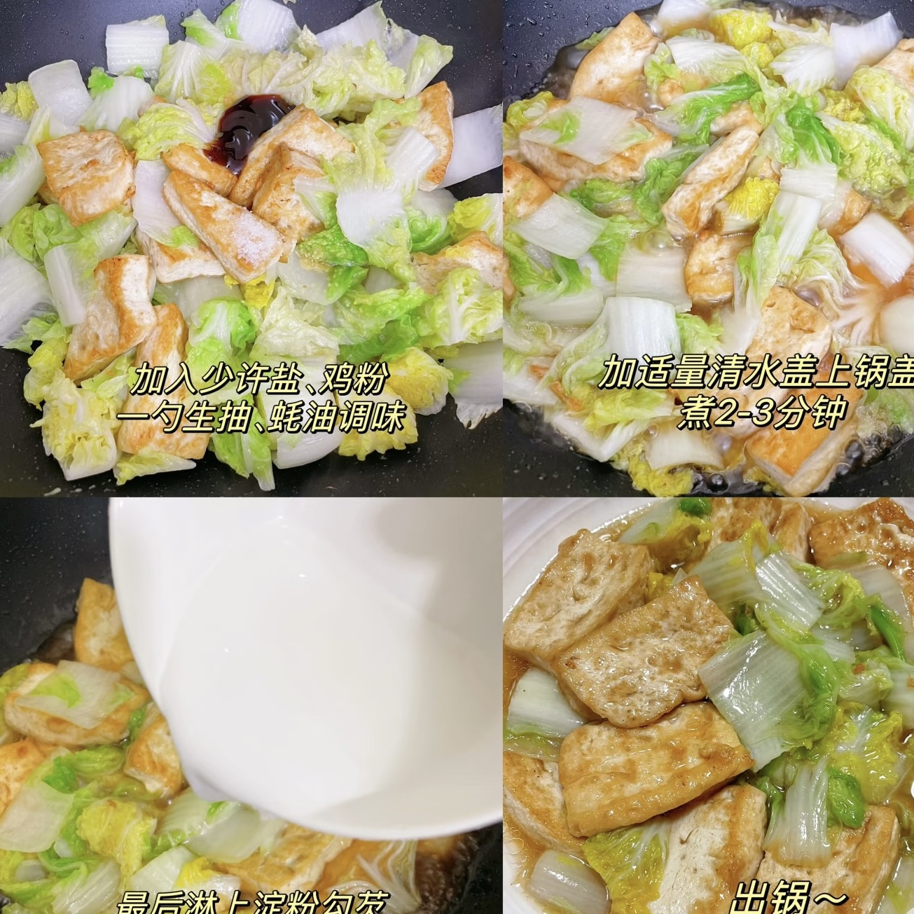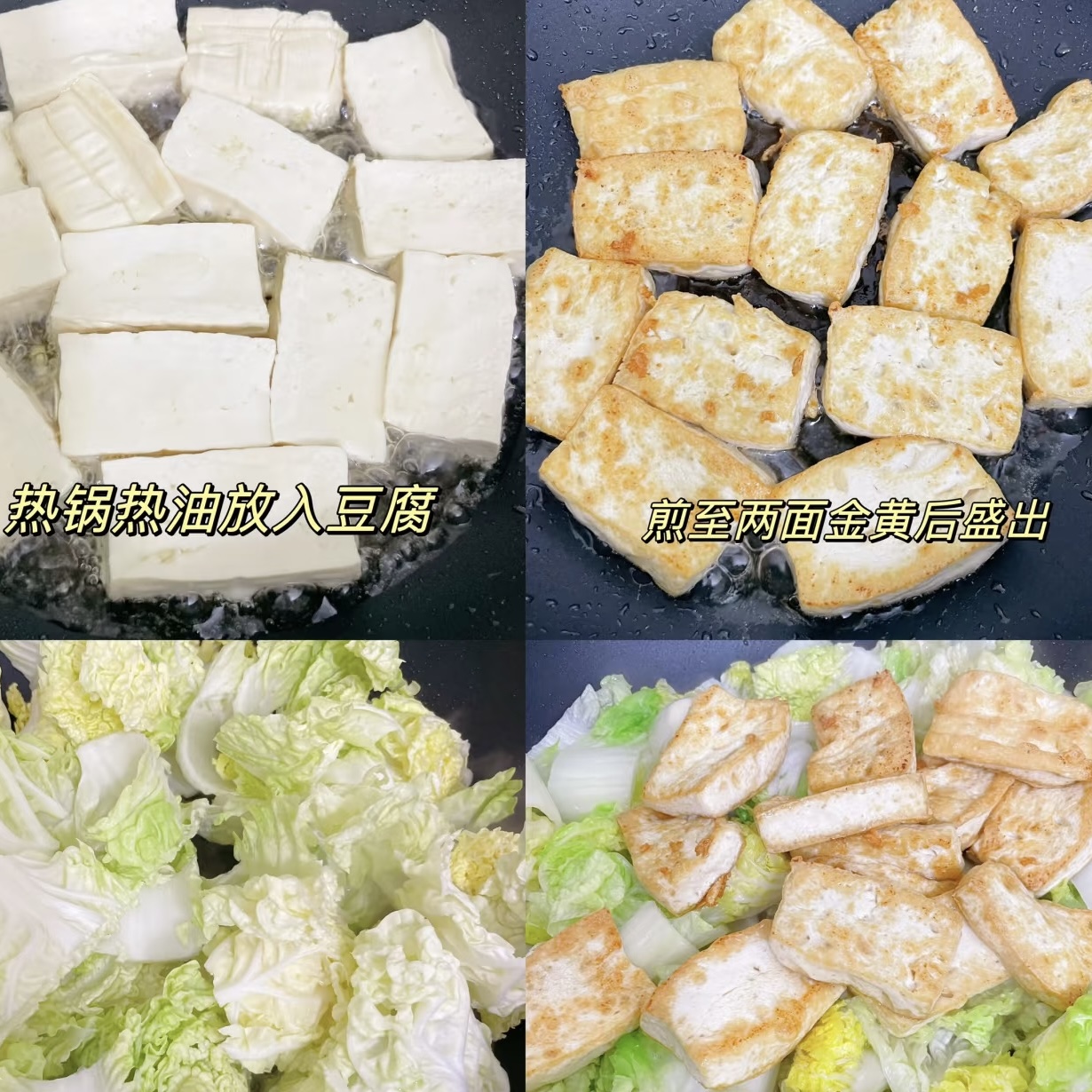 小贴士:豆腐一定要煎至边缘微黄再炖,豆香才浓;白菜一定要大火快炒,保持脆感,炒软等于失败;淀粉水一定要少量多次,避免一次倒太多成“面糊”。