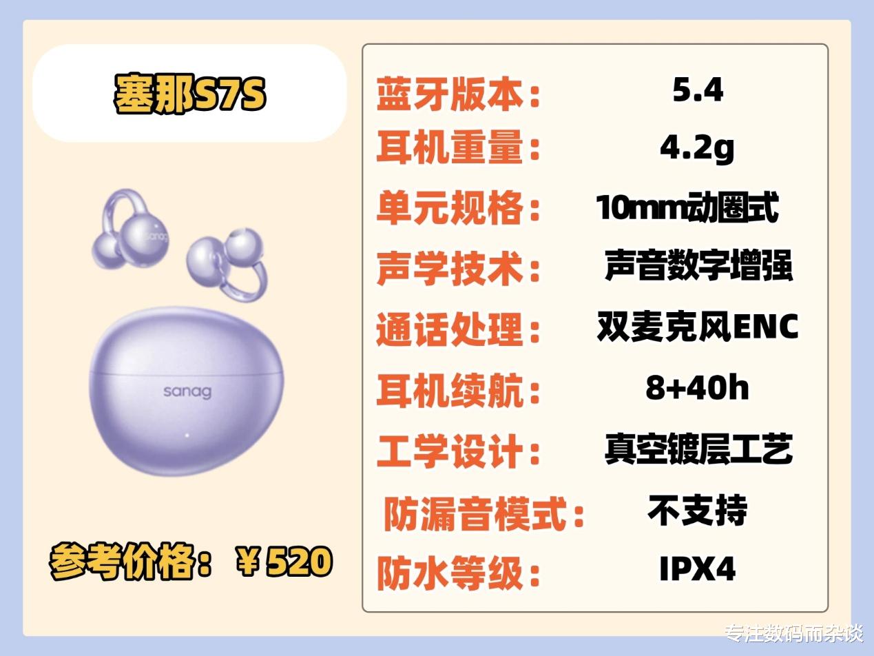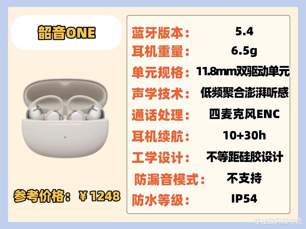 该款耳机的佩戴体验很不错,几乎是一个无感的状态,关键是还不却分左右耳,用起来非常棒,音质也说的过去,它搭载了高驱动复合声学系统,声音清澈又饱满,中频部分的表现也不错,人声非常通透,蓝牙5.4芯片很给力,打开耳机就连接上了,然后就是续航,达到了35个小时的长续航,他还支持一拖二,可以连接两台不同的设备,关键是价格还不到5张,真的非常适合入手!