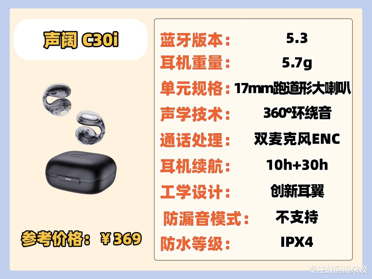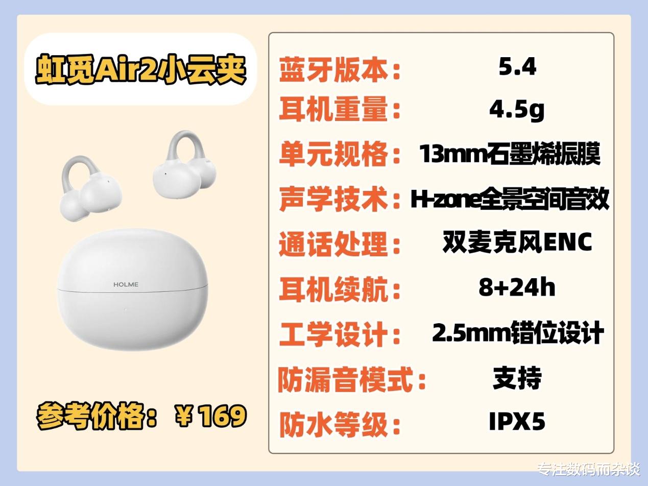推荐理由:百元内最具性价比的耳夹式耳机,音质体验足以与500价位耳机媲美。