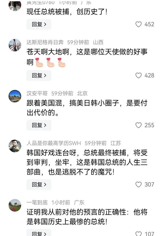 总之,从网友们留言中,我们可以看出是一种喜悦之情,而且流于言表。这说明尹锡悦确实不得国外之心,而且深恶痛绝之,也表明了尹锡悦做了伤害国与国之间的事情。