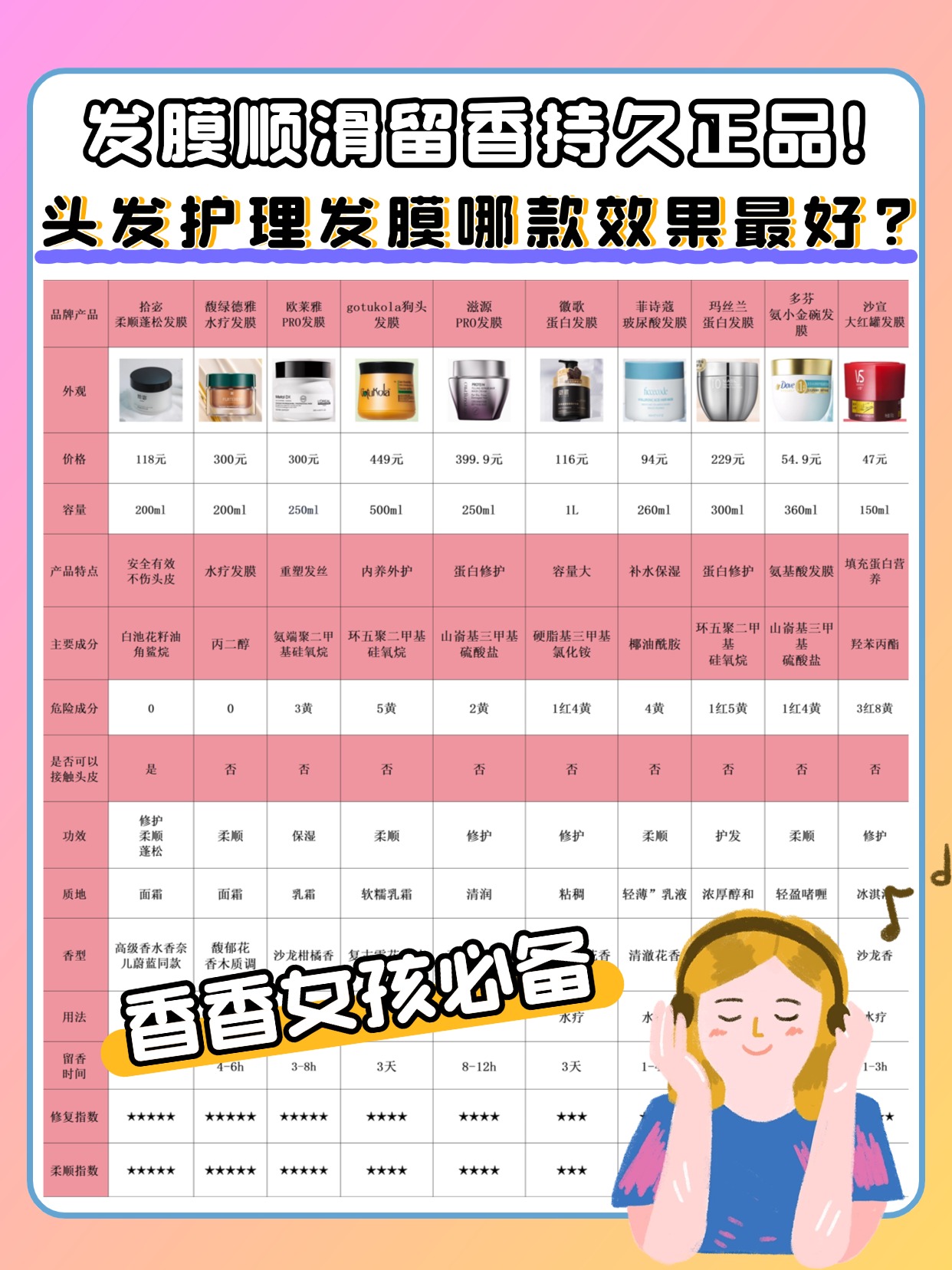 总有人纠结哪种牌子的发膜好,都想找顺滑留香持久的官方正品,毕竟香香女孩都想让头发自带香气,今天就说点实在的,打破品牌误区!重点解答如何判断精油好坏,还有发膜需要洗吗,这俩点是留香发膜的关键,也是香香女孩最容易忽略的。很多留香发膜靠精油锁香,但精油分好坏,优质精油气味自然不刺鼻,滴在纸上挥发后无油渍,还能滋养发丝,劣质精油气味刺鼻,挥发后留油印,长期用还可能刺激头皮,这也是我测评时常见的坑。还有大部分顺滑留香发膜都需要洗,敷完用温水冲净,不然残留会让头发变油打结,就算标注免洗,也只能少量涂发尾应急,不能全头涂。别被“官方正品”“留香持久”忽悠,先看精油品质、分清是否需洗,再选牌子,才能满足香香女孩的需求。下面是我总结的一些发膜选购注意事项,干货满满,可以先赞收藏。