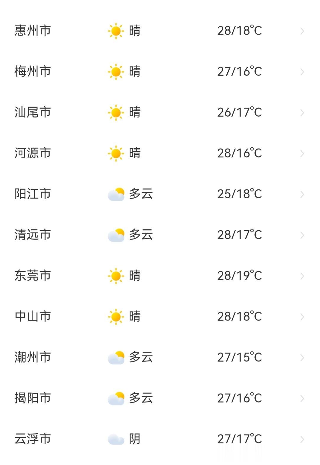 全省气温最高的城市分别是广州、佛山、肇庆、惠州、河源、清远、东莞、中山