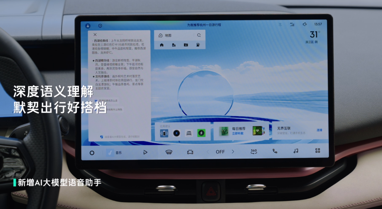 语音交互的改进是本次升级的亮点之一。智能语音助手接入DeepSeek大模型后,在自然语言理解和多轮对话能力上有了明显提升。用户现在可以用更接近日常对话的方式与车辆交流,系统能够理解并执行相对复杂的指令组合,这使得语音控制不再是简单的命令执行,而更像是一种自然的对话交流。这种交互方式的进化,让驾驶员能够更专注于路面情况,同时完成对车辆各项功能的控制。