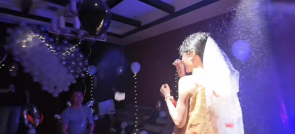 求婚现场视频有个细节:密室墙壁挂着《变形计》经典画面截图。