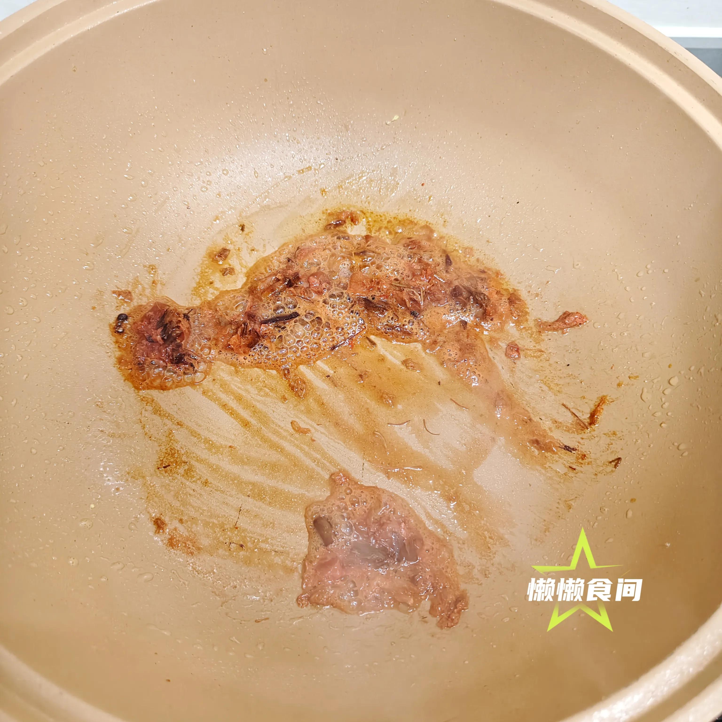 2、锅里热油,油热加入虾酱,翻炒一下。(虾酱微微冒泡就差不多了)