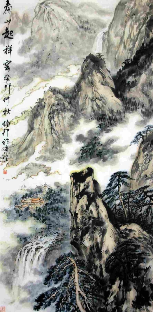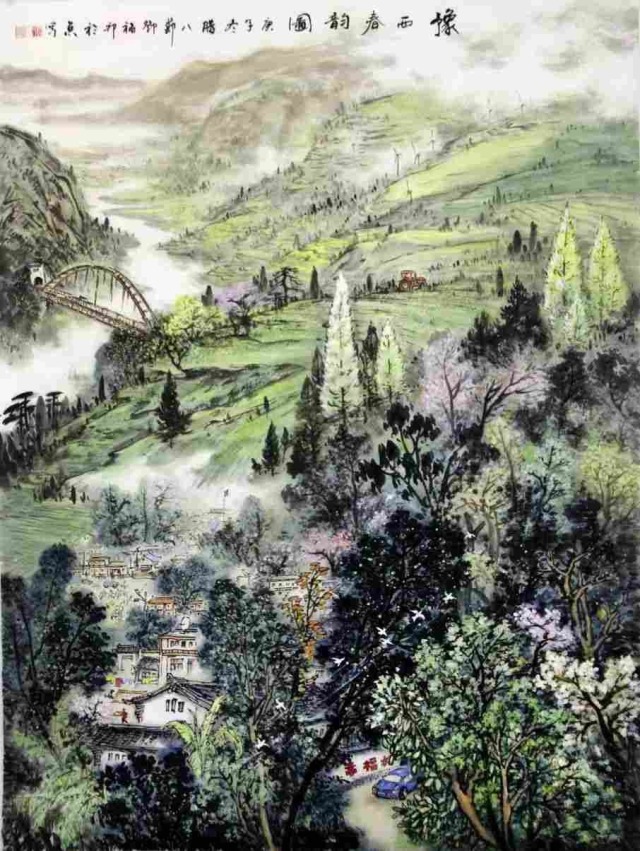 邓福邦的艺术根植于深厚的传统土壤,却又不拘泥于古法。他师从顾森、龙瑞等大家,在继承文人画精髓的同时,开创了"秦山画派"的新格局。这种创新并非对传统的颠覆,而是对"道"的现代化阐释。在他的笔下,山水不再是简单的自然摹写,而是宇宙精神的具象化表达;花鸟也不仅仅是物象的再现,而是生命律动的诗意呈现。这种艺术理念的突破,使得他的作品既具有传统的韵味,又散发着当代的气息。