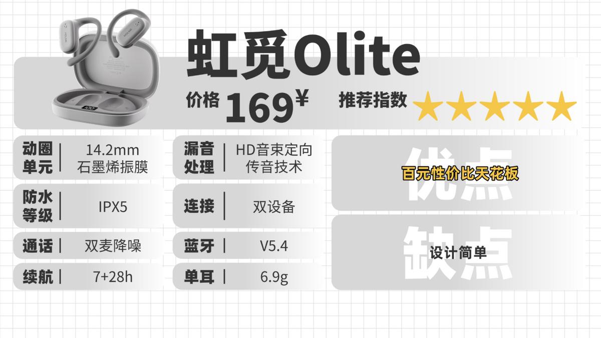 推荐理由:在百元价格,虹觅Olite不管是功能、音质还是佩戴舒适度方面,都应该是做得最全面的一款耳机了。