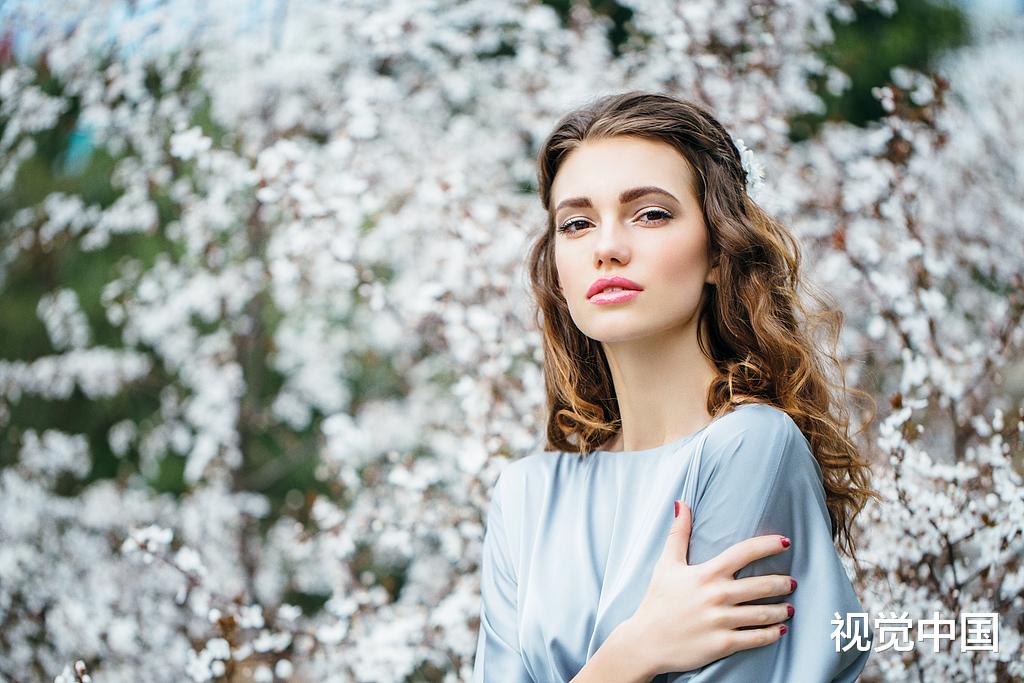 小女孩手上拎着一个纸袋子,里面放了有好几束鲜花,表情看着有些忧伤。
