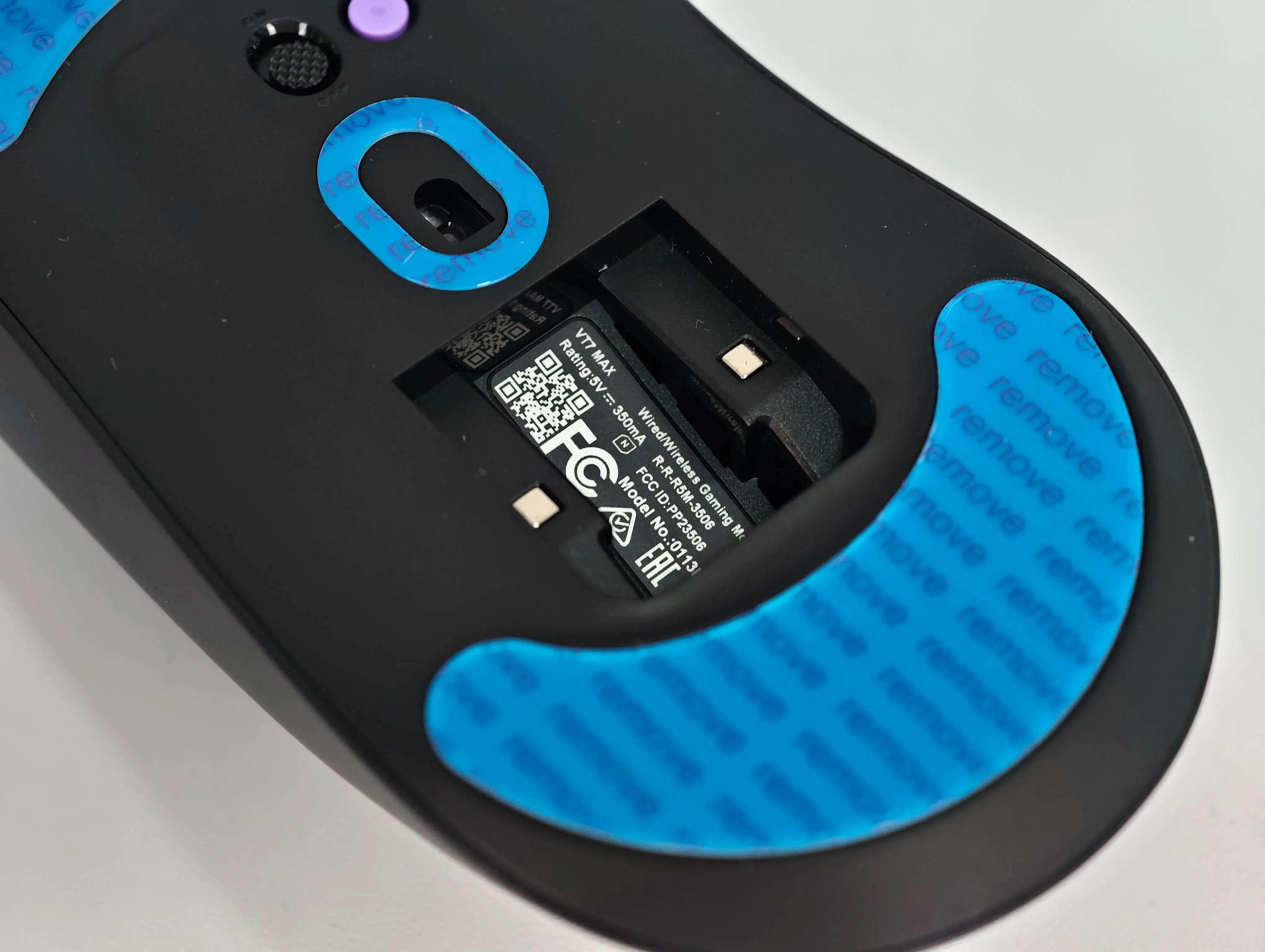 其中,雷柏VT7 MAX在鼠标侧面的下方引诱金色的烫金“MAX”字样作为区分。