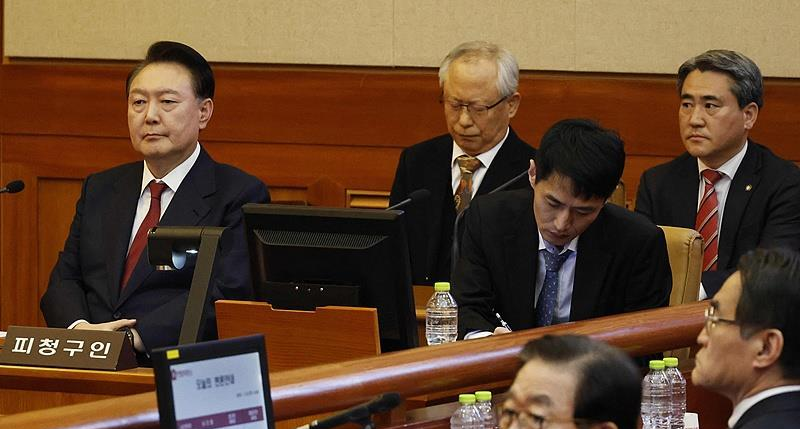 最后不得不提一个稍微带点插曲性质的小状况。当时在问询环节里,一开始金龙显只愿意回答代表总统方律师提出的问题,却拒绝搭理国会代理律师。好家伙,你这态度让现场气氛瞬间剑拔弩张。不过宪法法院院长发飙警告了一番之后,他倒也是乖乖配合起来,让各方该问啥继续问啥。所以从某种角度讲,人情世故总归还是不能太任性对吧?