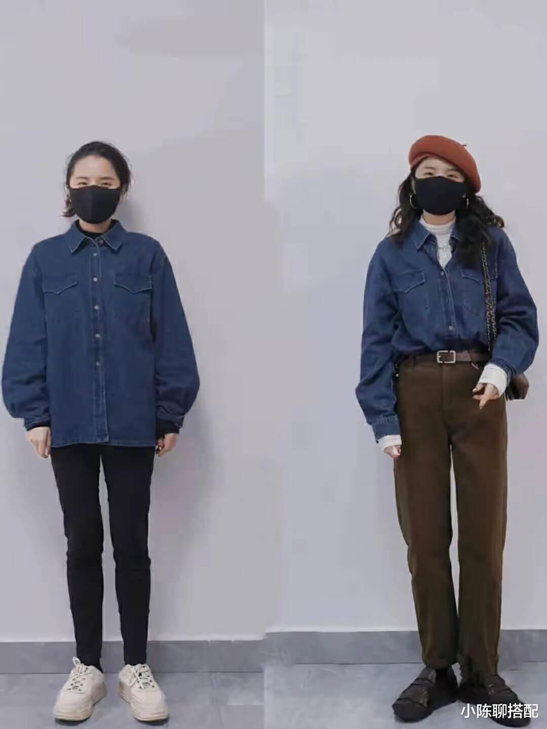 如下图的对比所示↓,在原有的基础款单品之上稍作改动,再叠加一些帽子,耳环,包包,腰带等配饰,就能使造型更加活泼减龄,让整个人看起来都十分的亮眼且时髦。