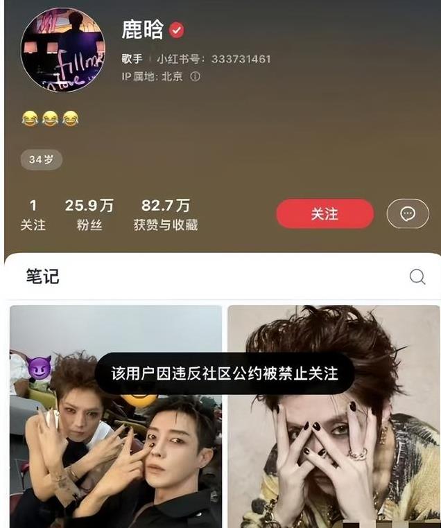 具体来说,鹿晗的账号在三大热门社交平台上都无法显示关注,其中一个平台更是直接贴出了“违反相关法规或社区准则”的标签。