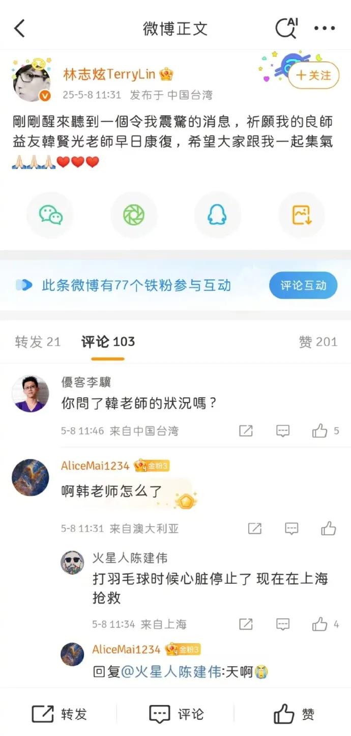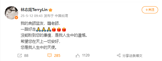 2025年5月12日凌晨,林志炫的微博定格在一行沉重的文字:“没能盼到您的康复,是我人生中的遗憾。”这条短短的动态,瞬间冲上热搜榜首。他悼念的对象,是华语乐坛传奇音乐人韩贤光——那个曾用音符编织《单身情歌》《离人》的幕后英雄,那个在羽毛球场上突然倒下的67岁老人。