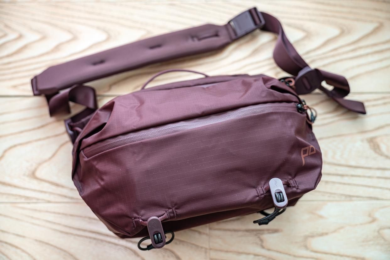 因为我的经验告诉我行李放到酒店后,不是所有时间都会背双肩包出门,比如当天晚上出来闲逛,肯定单肩包很合适,我目前用的 bellroy 10L 单肩包太大了,找了一圈发现 peakdesign 的单肩包居然比以前好看了不少,这款 outdoor sling 7L 大小也刚刚好,我就是按照能塞进骇客 26L 的设计来选的。