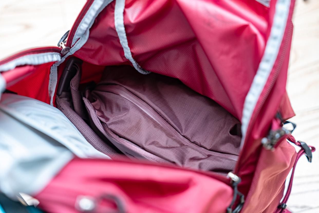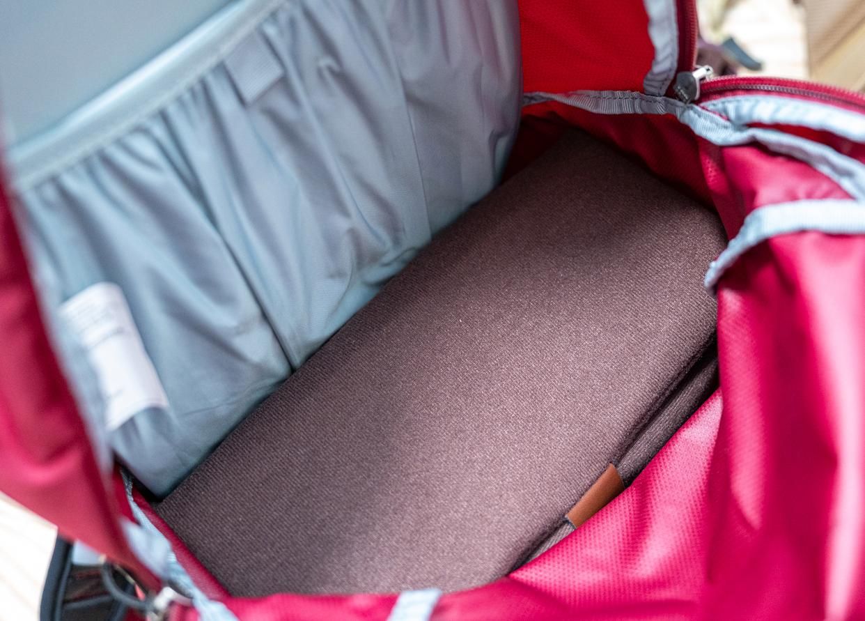 至于笔记本,那肯定只能放在水袋那一层了,没有任何防护,不过歪打正着,背面 airspeed 背负系统是个大弧面拉扯着,背部怎么都不会压到背包的背部,也就没有风险了,正面一般放的也都是衣物。
