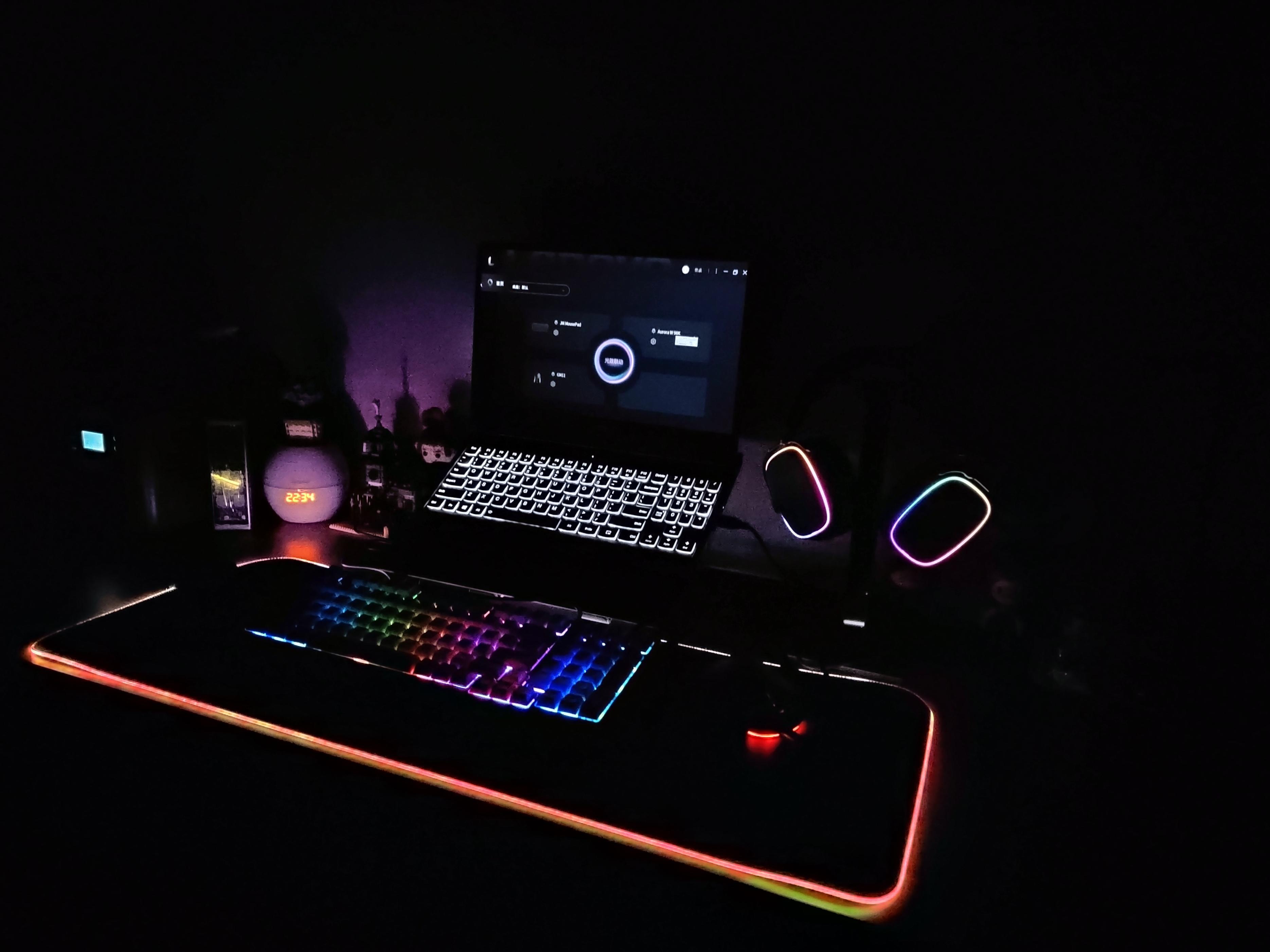 鼠标垫环绕一圈的RGB灯带,能够和键盘、鼠标实现联动效果,让我们在使用过程中更加的有氛围感,更加沉浸在竞技的世界里面。(灯带和鼠标垫是通过锁边的设计让其镶嵌在四周,同时有非常好的韧性不惧弯折)。