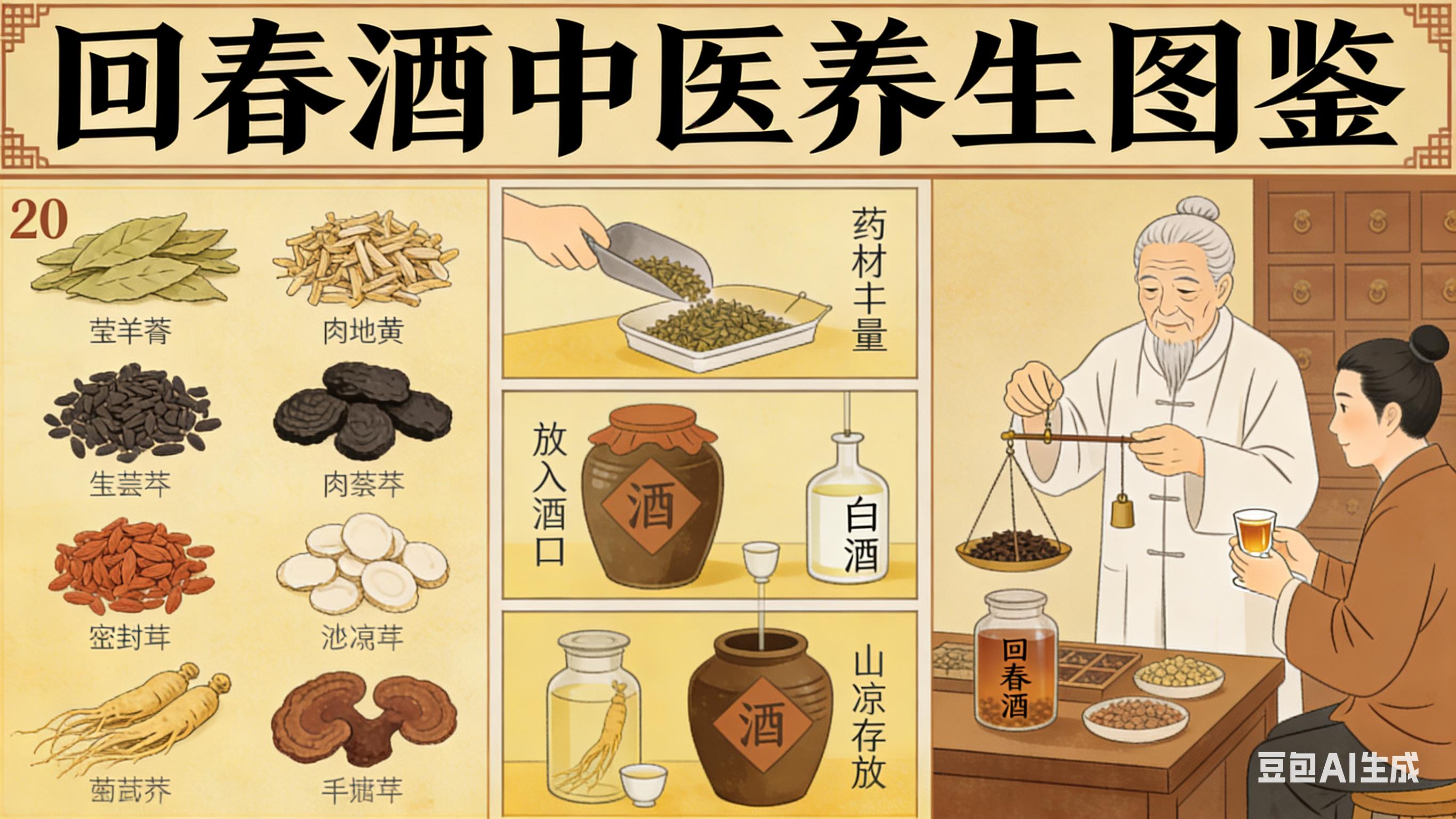 一、回春酒的“黄金配方”:20味药材的智慧配伍