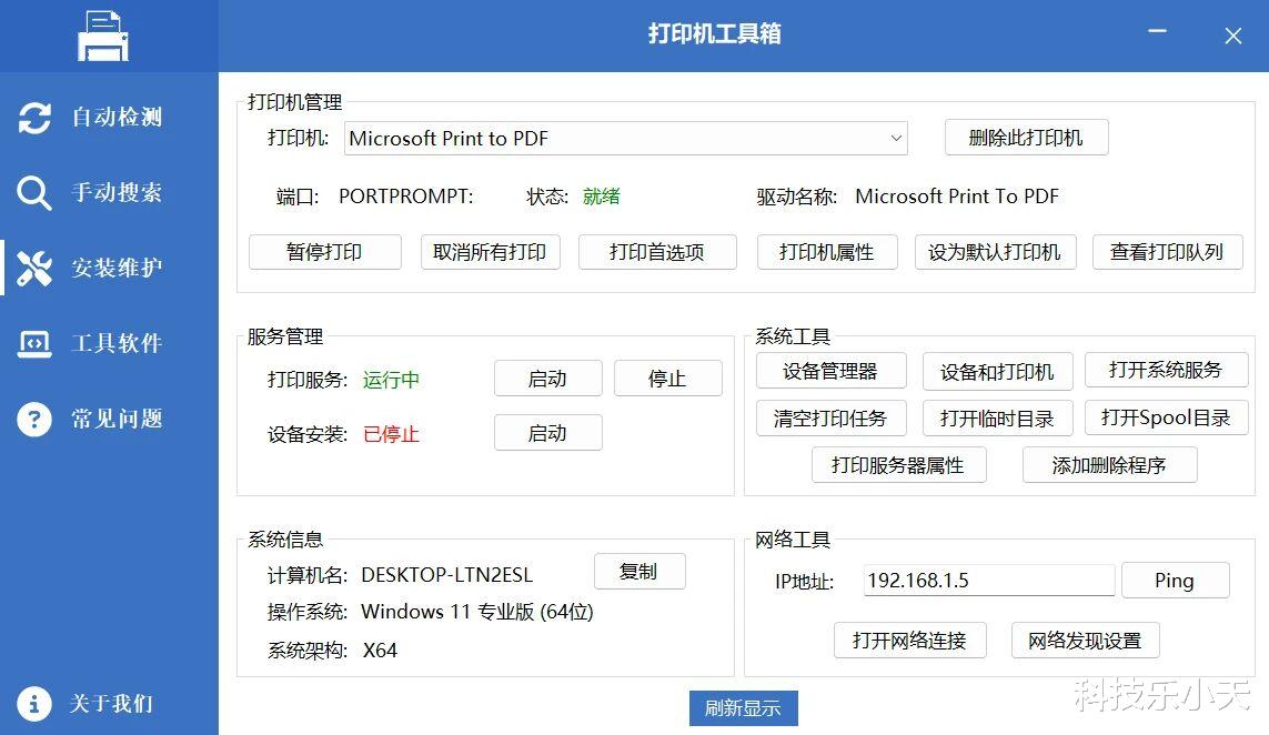 大家好,这里是科技乐小天,当电脑连接打印机之后经常会遇到无法正常使用的情况,很多时候是因为没有正确安装对应打印机驱动所导致的,而对于很多对电脑硬件设备安装并不熟悉的用户来说,想要自己安装打印机驱动并不是一件容易的事情,那么今天我来给大家分享一款打印机工具箱,你只需要将打印机连接到电脑上,就可以通过这款软件一键安装打印机驱动,让设备正常运行。