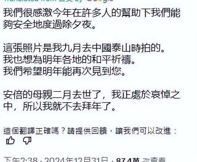 在去过泰山之后,安倍昭惠还在社交媒体上发布了一些文字。