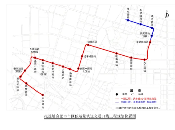 合肥市市区低运量轨道交通建设规划(2024-2028年)已获批复,正有序推进低运量轨道交通L1线的前期设计工作。