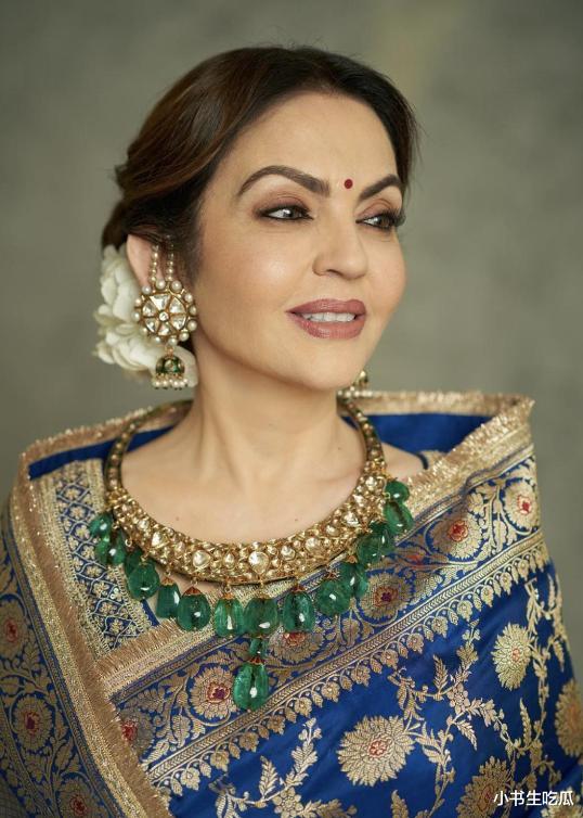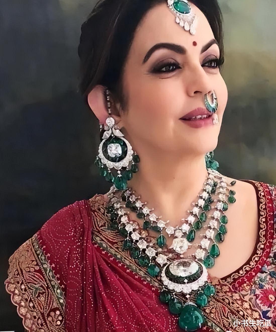妮塔陪着穆克什参加活动,戴着一整套的祖母绿首饰,看起来雍容华贵又漂亮。