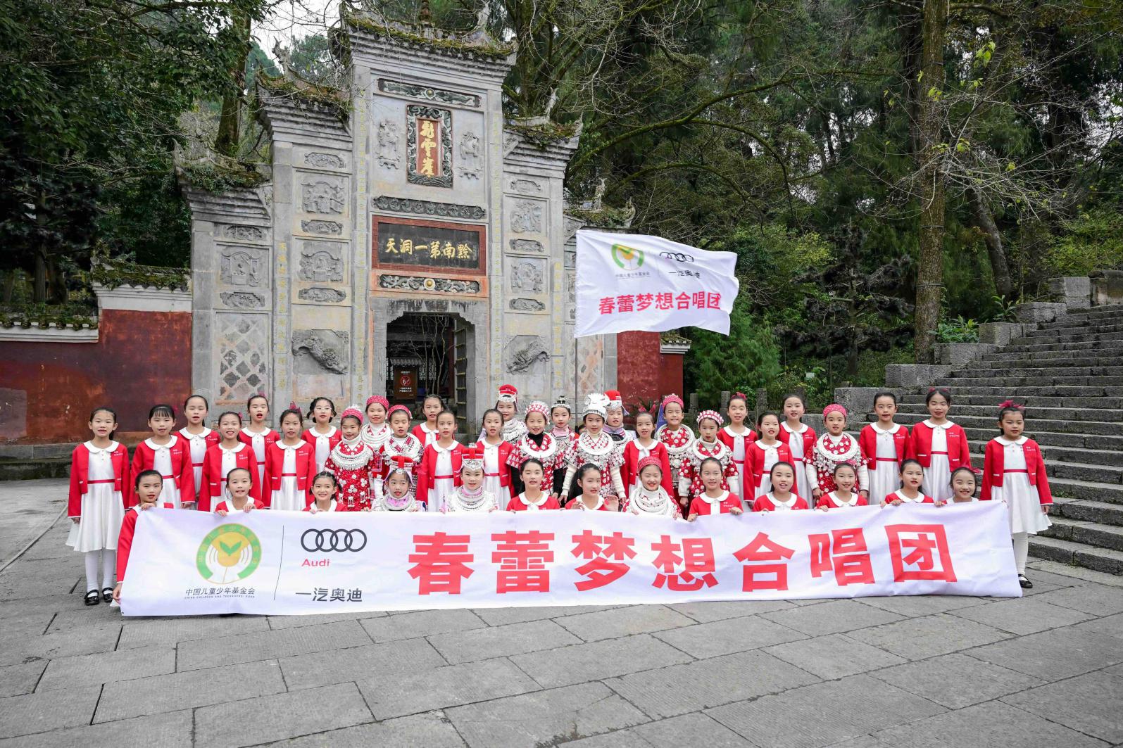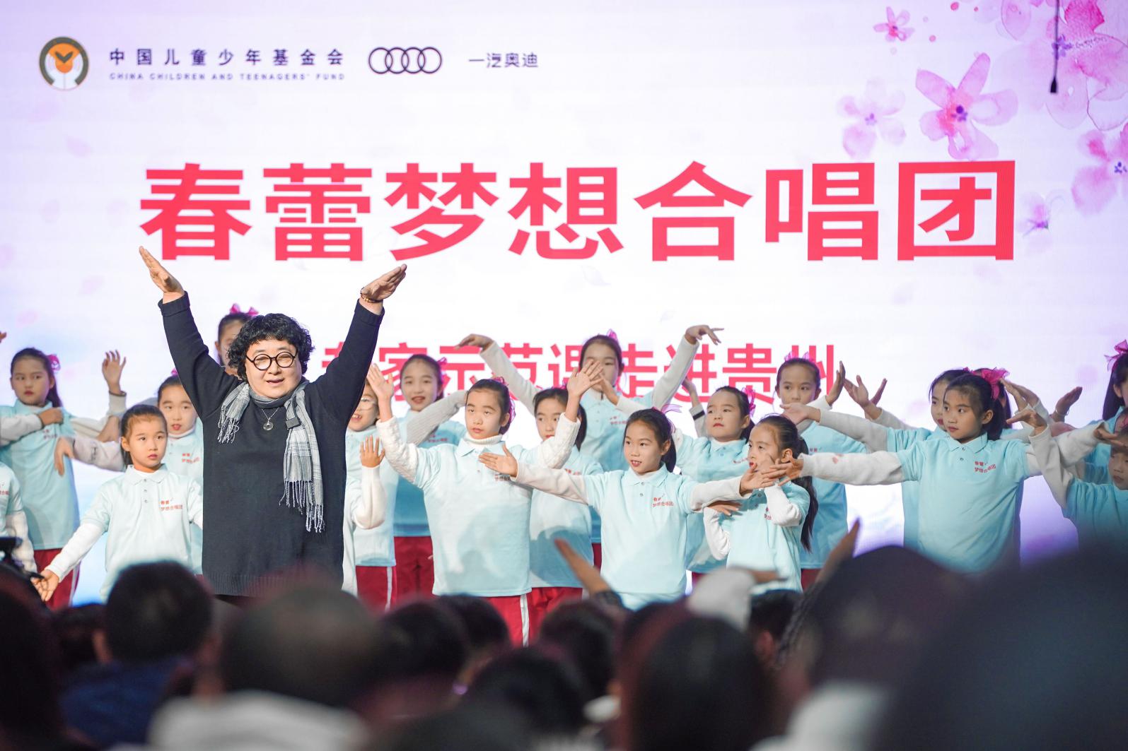 “春蕾梦想合唱团”专家示范课走进贵州省黔东南苗族侗族自治州,一汽奥迪与中国儿童少年基金会携手当地师生共同成立“春蕾梦想合唱团”贵州团,助力当地春蕾女童唱响民族之声。