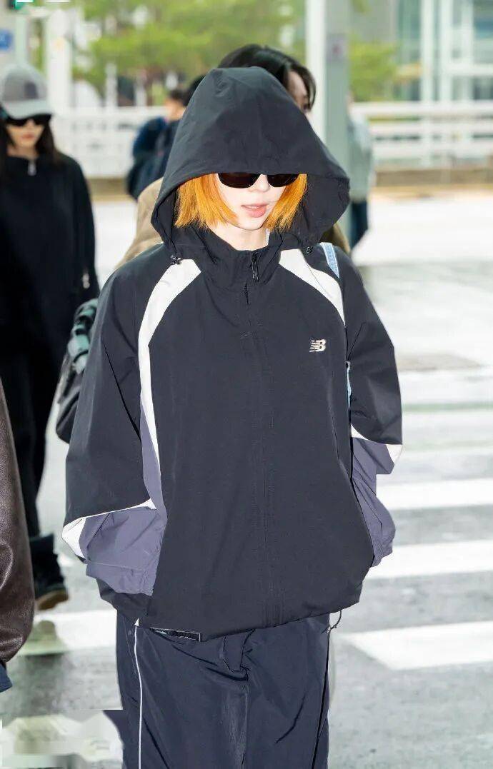 金玟庭此次以橘色长发搭配墨镜、简约休闲装现身机场,发色与夏日氛围相得益彰。