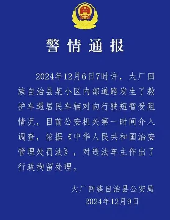 私家车逼退救护车,致送医患者死亡?警方通报:车主被行政拘留 光明网 2024-12-09