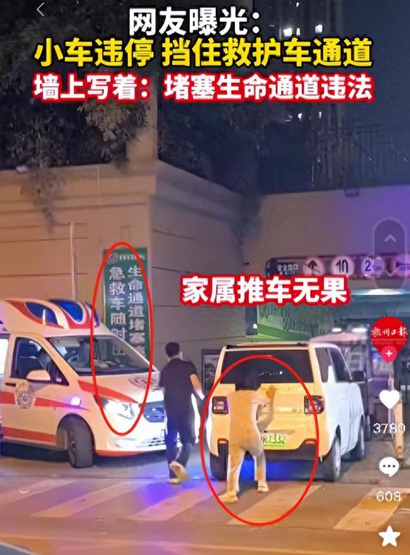 救护车司机也是在第一时间联系了小电车的车主,让她赶紧过来移车,可谁知等了一会司机就是不来,病人家属情急之下用手去推车,希望能把小电车给推走让路,然而小电车根本推不动,牢牢地挡在路中间。