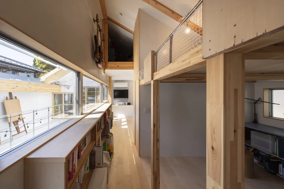在日本,屋顶之下的空间才计入建筑面积,通过这一“策略”,成功地利用了法律的漏洞,将可用空间从38平米增加到了53平米。这样一来,一楼的实用面积增加了近1.5倍。在家的设计上,高桥先生追求极致的简约风格,与此同时,家中却充满了个性化的装饰和多彩的元素。整个住宅有两层,一楼设有厨房、餐厅和客厅,二楼是夫妻的卧室及各自的工作室。