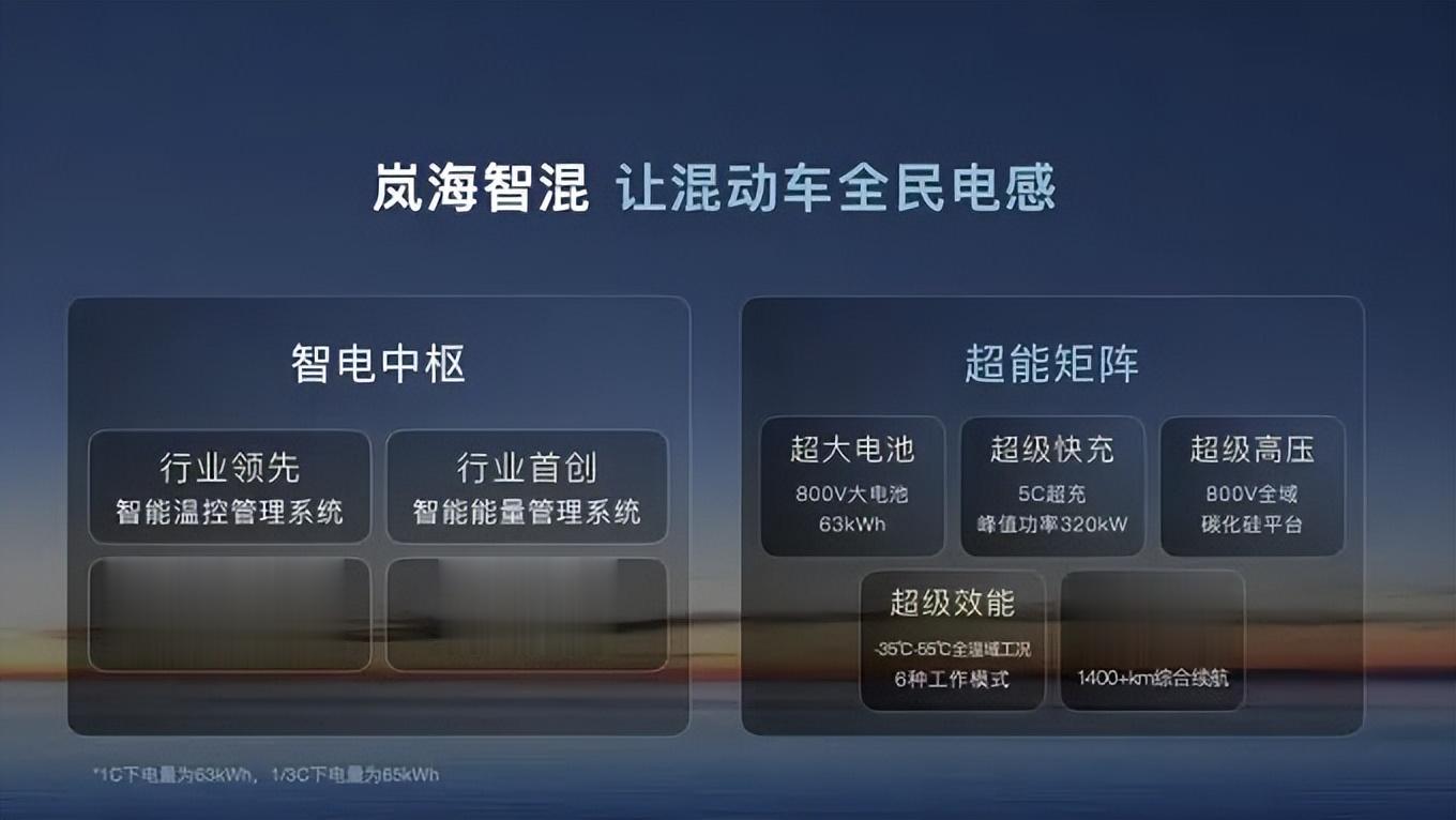 三电领域,岚图在全球首发的800V岚海智能超混技术,以全域800V系统、5C超充及大电量电池的综合技术方案,实现中大型混动车型360-410公里纯电续航、超1400公里综合续航,以及最快12分钟从20%充至80%的超高充电效率。