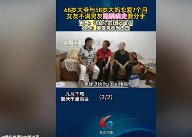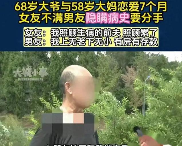 重庆68岁的叶大爷与58岁的张大妈相恋7个月,叶大爷觉得自己的经济条件、生活条件都很优越,张大妈对他也十分殷勤,两人感情稳定。他曾多次在朋友面前夸耀自己的女友有多么体贴。不过叶大爷的这段爱情经历最终以分手告终,原因是张大妈对叶大爷隐瞒了自己的健康状况。