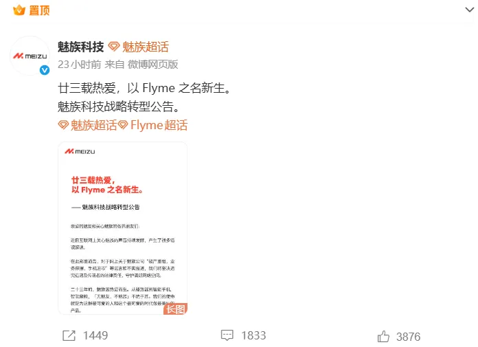 2月28日,魅族的一则公告,炸醒了无数老魅友。没有煽情,没有铺垫,魅族直接官宣:暂停国内手机新硬件自研,全面转向AI驱动的软件生态,以后重心放在Flyme开放生态上。官方反复强调,不是告别,只是换条赛道,但懂的人都懂,这意味着,我们大概率等不到魅族23了。