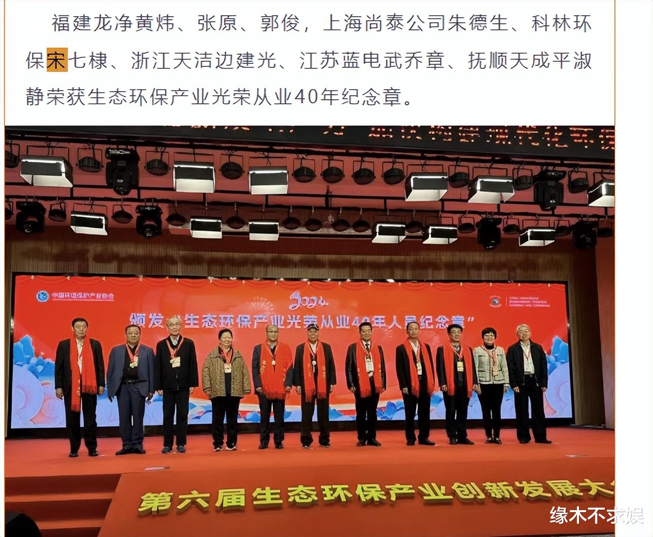 据悉,宋七棣生前是中国环保产业协会的副会长,在多个环保机构担任重要岗位,由此可见宋七棣为中国的环保事业做出了不小的贡献。事实上,宋七棣也确实获得过“中国环保产业杰出贡献奖”。
