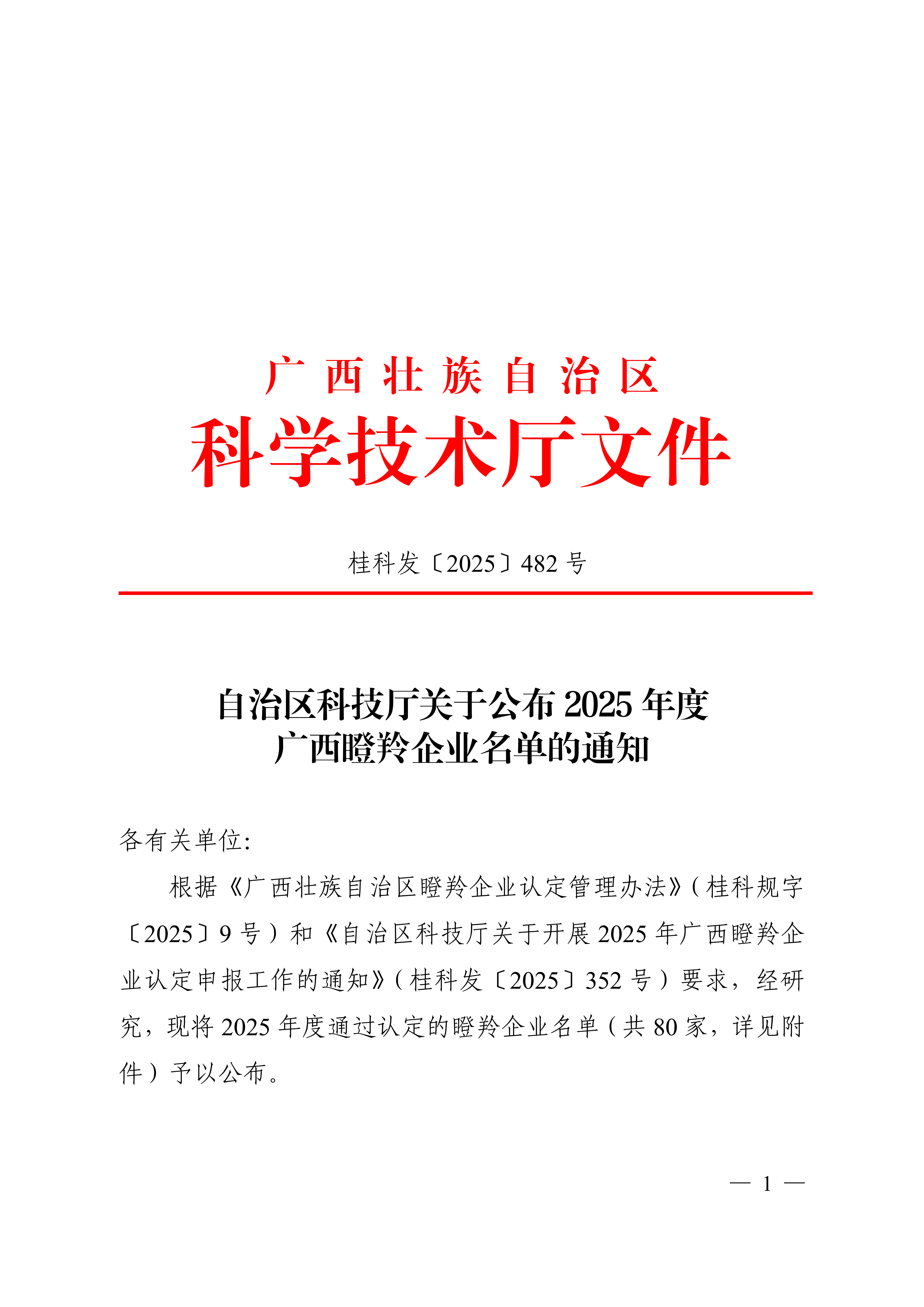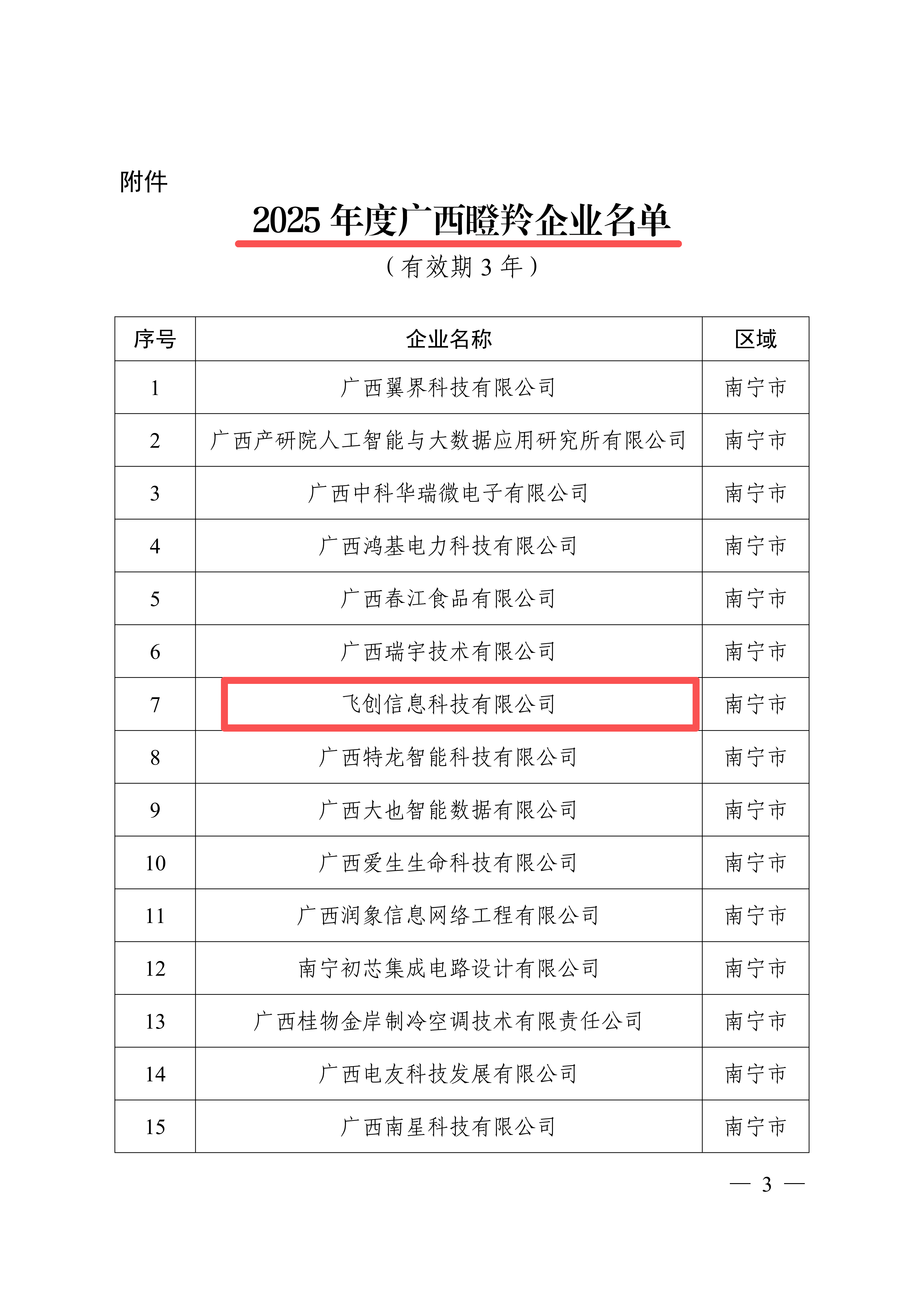 近日,广西壮族自治区科学技术厅正式公布2025年度广西瞪羚企业认定名单。经过严格评审,飞创信息科技有限公司凭借在专业领域内持续的创新活力与高速的成长态势,成功入选!